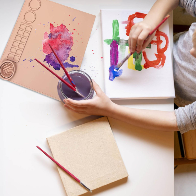 Cleanup time doesn't have to be a drag anymore. No more scrubbing stubborn paint off the floor or picking up tiny beads! Our silicone mat is a breeze to clean, meaning you get to spend more time admiring your mini-Monet's masterpiece and less time on your hands and knees. And did we mention? The mat is so easy to fold and store; it’s like it almost puts itself away!