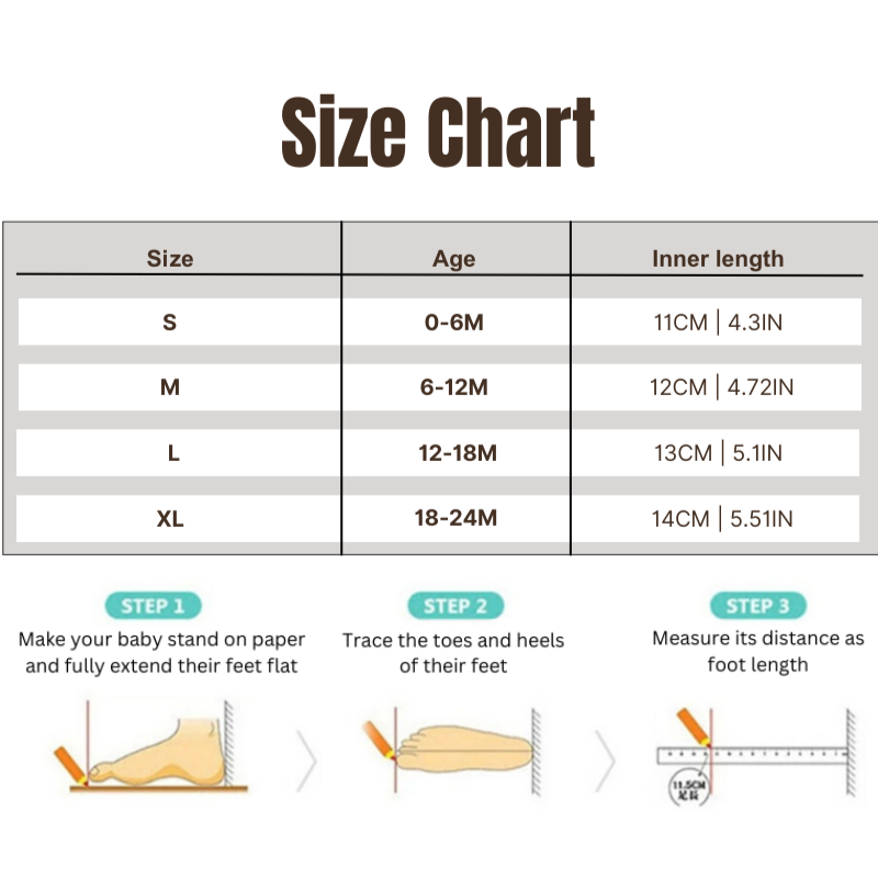 We know every baby is unique, and so are their feet. CuddlePaws' versatile high tube design ensures a secure fit for both chubby and slender little ankles. Whether your baby has petite or plump feet, these shoes will stay on securely, no matter how active they get. Say goodbye to lost shoes and frequent adjustments!