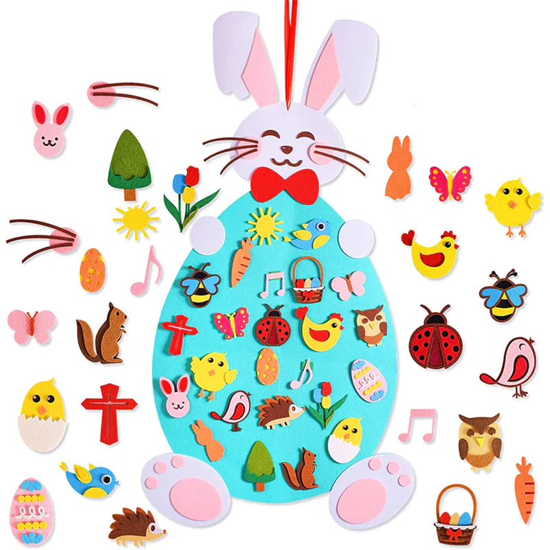 This kit comes with a soft and huggable felt bunny as the centerpiece, along with a variety of felt parts such as colorful eggs, baskets, and other Easter-themed decorations.