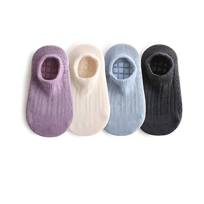 Support early movement with SnugSteps – soft and grippy ankle socks designed to help toddlers walk, explore, and play safely indoors while keeping their tiny feet cool, secure, and full of joyful energy.